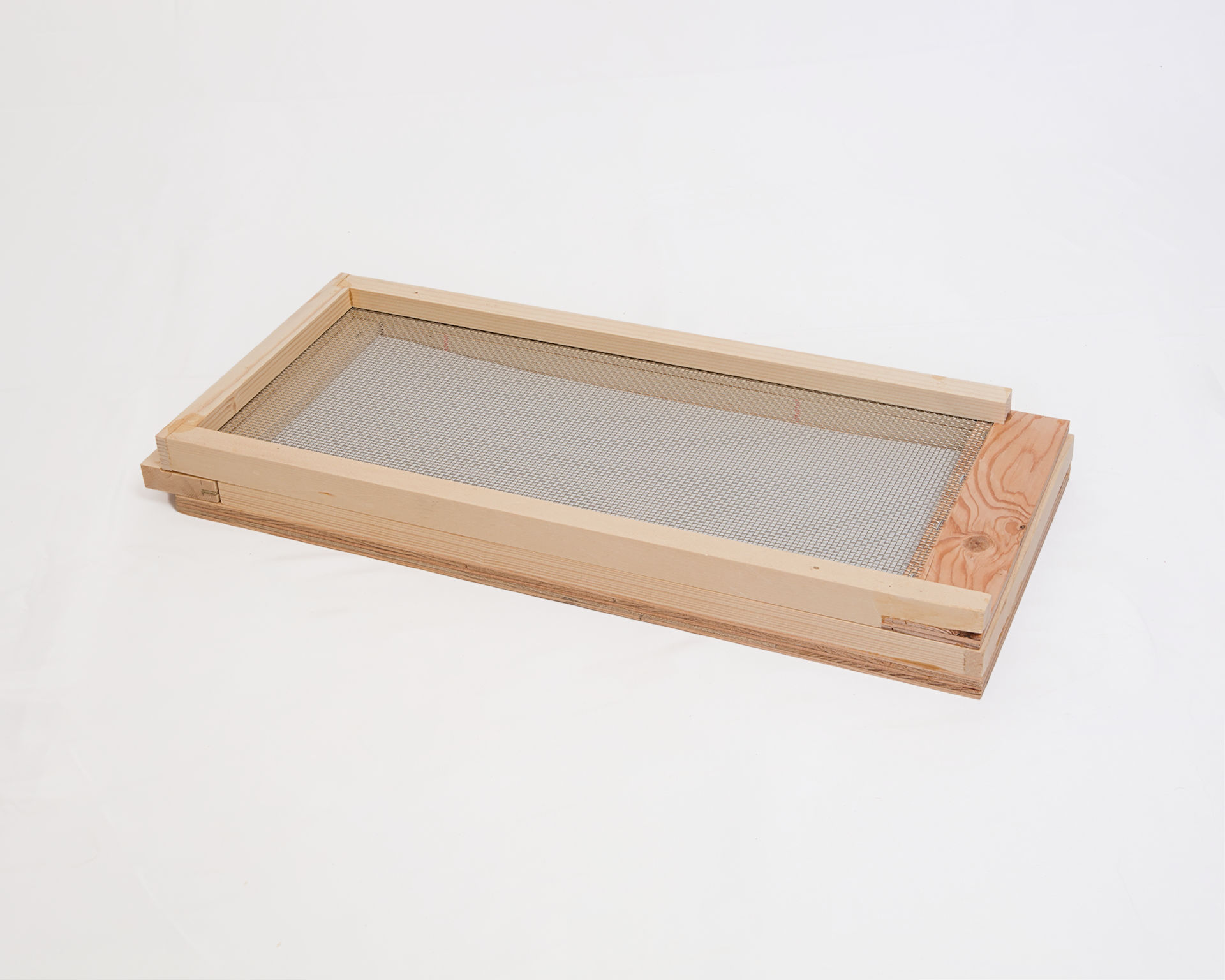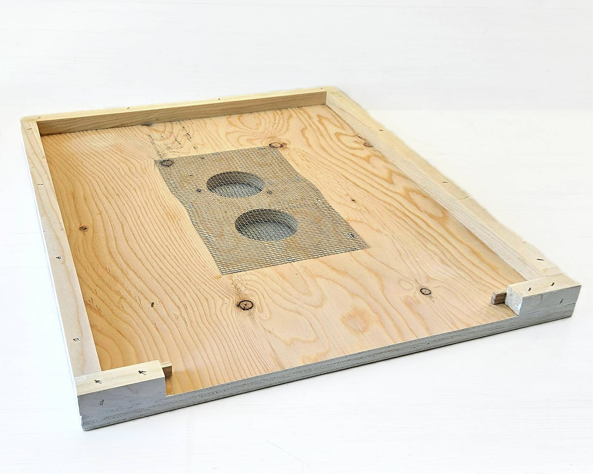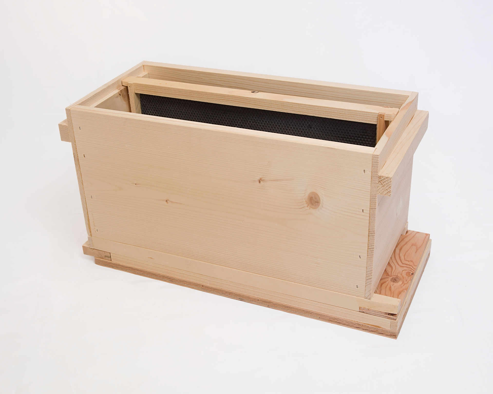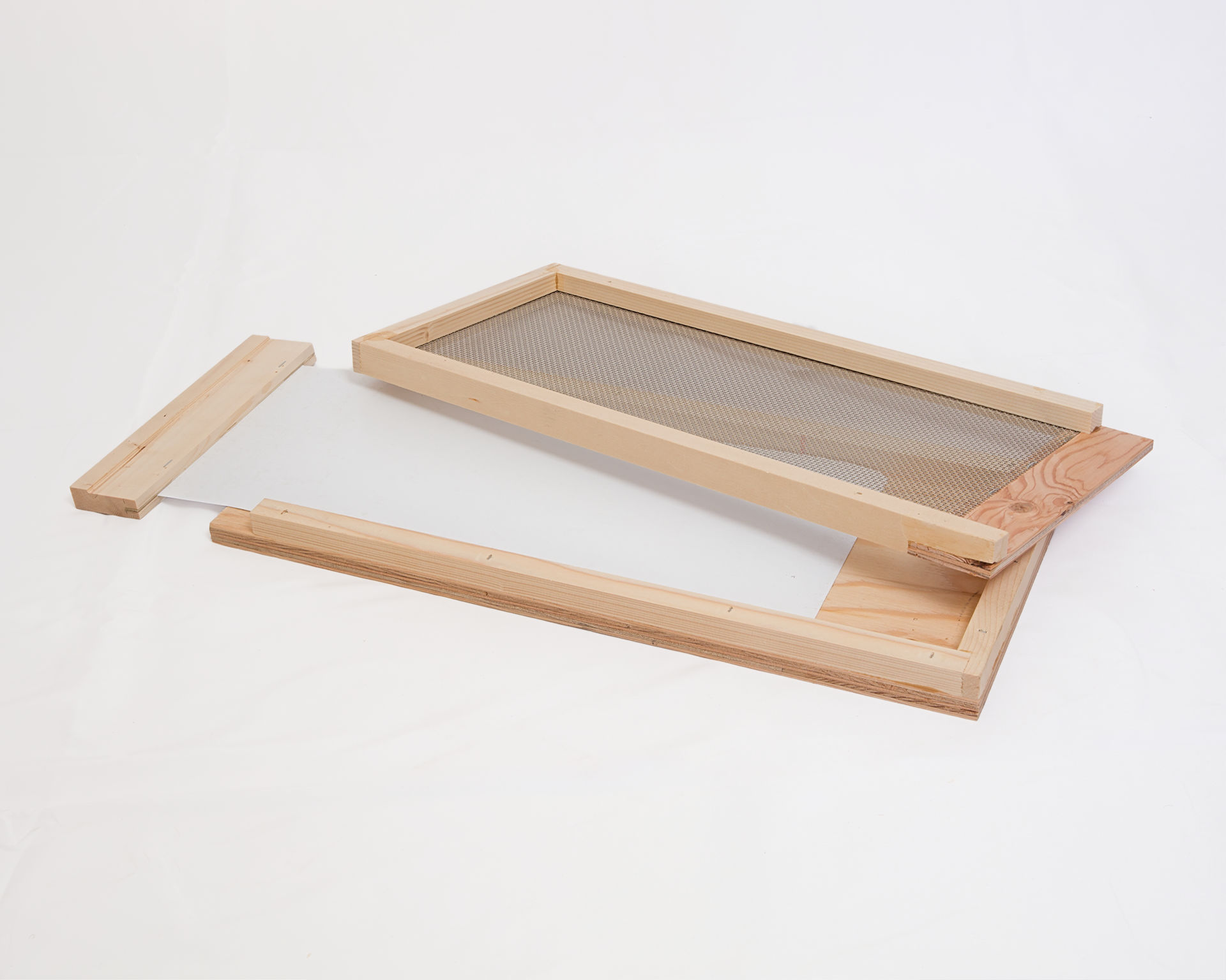 Brood boxes, supers, screened bottom entry boards with mite counting board & galvanised mesh, inside covers, insulated telescopic covers, migratory covers with rim.